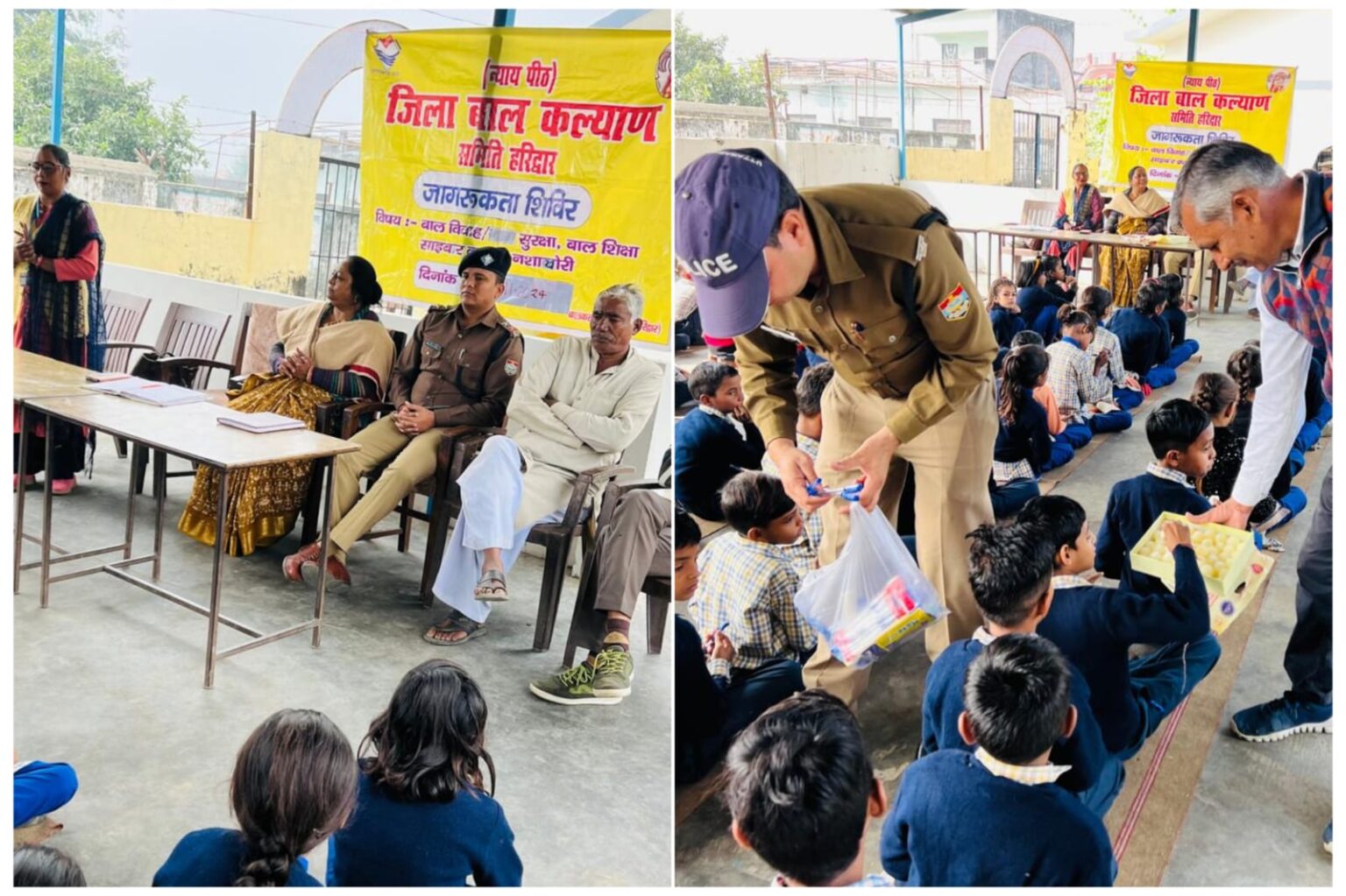 जिसमें सीडब्ल्यूसी अध्यक्षा अंजना सैनी तथा चौकी प्रभारी धनौरी हेमदत्त भारद्वाज के द्वारा बच्चों के सर्वांगीण विकास के संबंध में जागरूकता व्याख्यान दिए गए, तत्पश्चात पुलिस द्वारा बच्चों को मिठाई के साथ पेन पेंसिल वितरण कर बाल मित्र पुलिस भावना को सुदृढ़ बनाने हेतु मिलजुल कर बाल दिवस को मनाया गया ।
