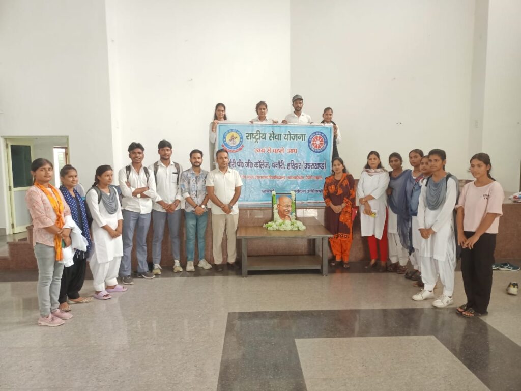 पिरान कलियर : (फरमान मलिक) धनौरी पीजी कॉलेज। NSS यूनिट के सौजन्य से गांधी जयंती पर छात्रों और शिक्षकों ने श्रद्धांजलि अर्पित की और परिसर व आसपास के क्षेत्रों में वृहद स्वच्छता अभियान चलाया।