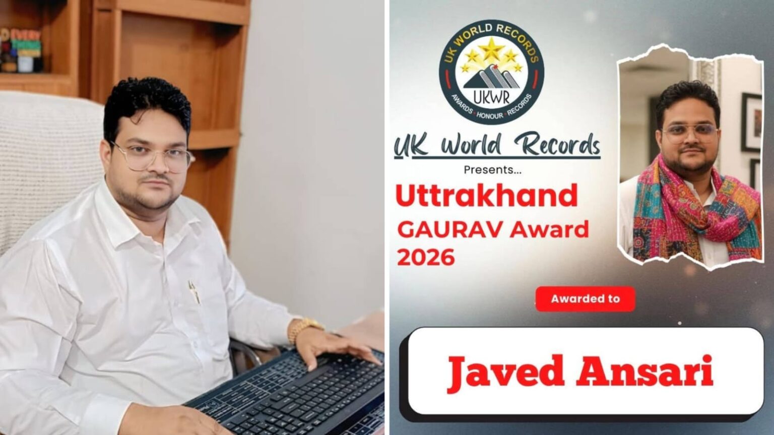 उत्तराखंड में शिक्षा और स्किल डेवलपमेंट को नई ऊँचाइयों तक पहुँचाने वाले उनके उल्लेखनीय विज़न, निर्णायक नेतृत्व और 2013 से जारी निरंतर सेवा के लिए UK वर्ल्ड रिकॉर्ड्स ने गर्व के साथ जावेद अंसारी को उत्तराखंड गौरव पुरस्कार 2026 से सम्मानित किया है।